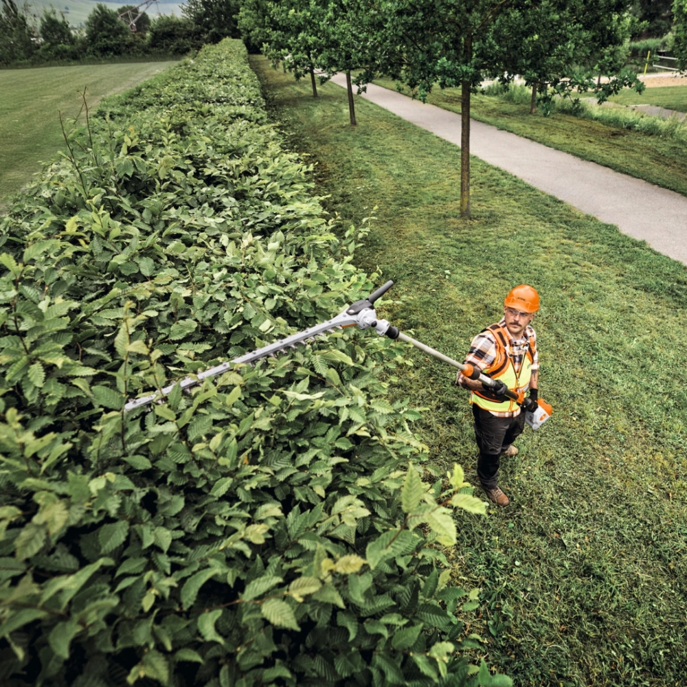 L'innovation majeure de ce modèle réside dans son équilibre parfait entre envergure et précision. Grâce à son tube télescopique permettant d'atteindre une longueur totale de 330 cm, il traite avec aisance les haies les plus imposantes. Pour garantir une maniabilité optimale, STIHL a opté pour un carter de transmission en magnésium, réduisant le poids en tête tout en protégeant les organes mécaniques. La poignée de commande ergonomique intègre désormais une interface numérique avancée permettant de moduler la vitesse de coupe sur trois paliers, optimisant ainsi la gestion de l'énergie des batteries du système AP.