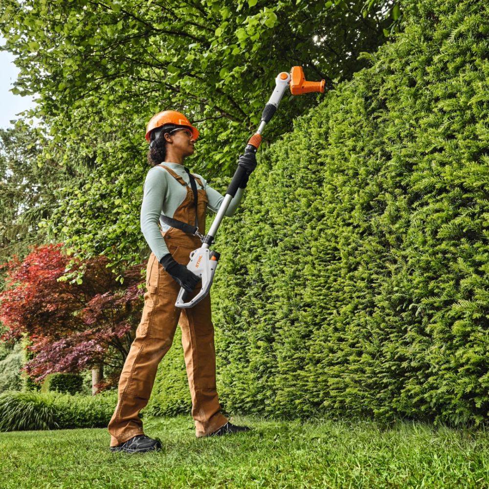 Le taille-haie sur perche à batterie STIHL HLA 40 permet l’entretien des haies hautes, des arbustes et des zones difficiles d’accès autour de la maison, y compris dans les environnements où le niveau sonore doit rester limité. Il est doté d’un lamier de 45 cm et fonctionne avec les batteries lithium-ion du AS SYSTEM STIHL.