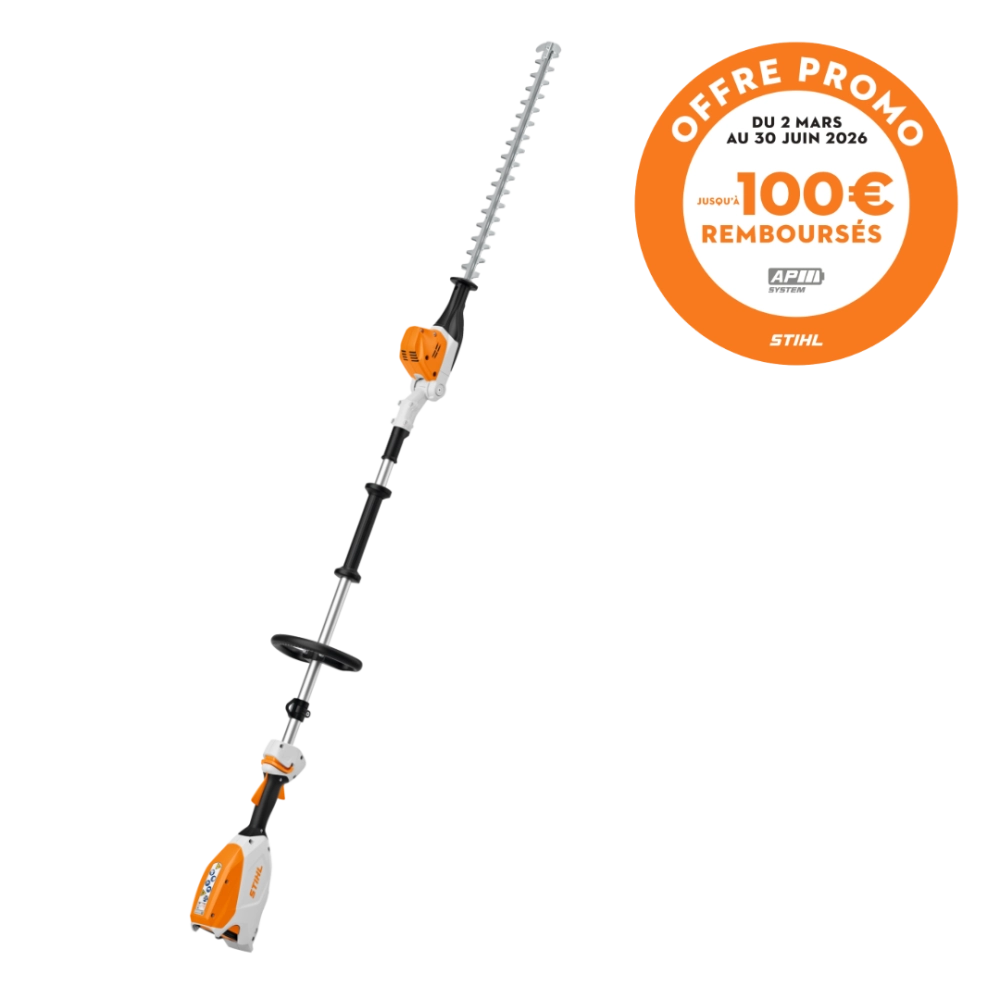 OFFRE DE REMBOURSEMENT STIHL : 50€ remboursés par STIHL pour l’achat de cette machine AP nue. 100€ remboursés par STIHL pour l’achat de cette machine en pack (avec une batterie AP et un chargeur compatible). Offre valable du 2 mars 2026 au 30 juin 2026 dans la limite de participations restantes. Conditions complètes disponibles sur stihl-promo.fr/modalites/ap