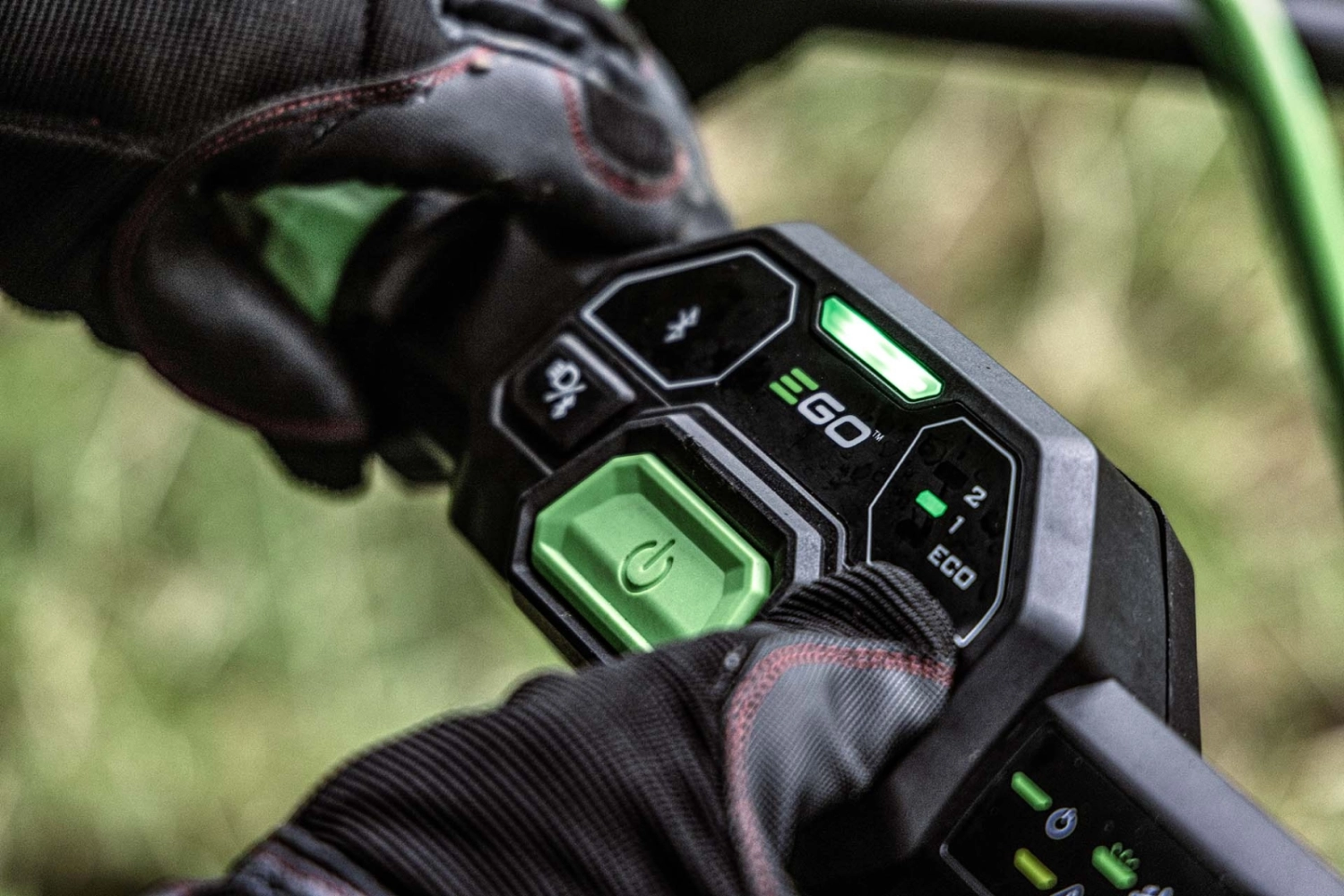 Via l'interface Bluetooth, il est possible de se connecter à distance grâce à l'application EGO Connect , qui permet à l'utilisateur non seulement de surveiller les performances de la machine, mais également de surveiller l'état actuel des batteries afin qu'elles soient prêtes à travailler à temps.