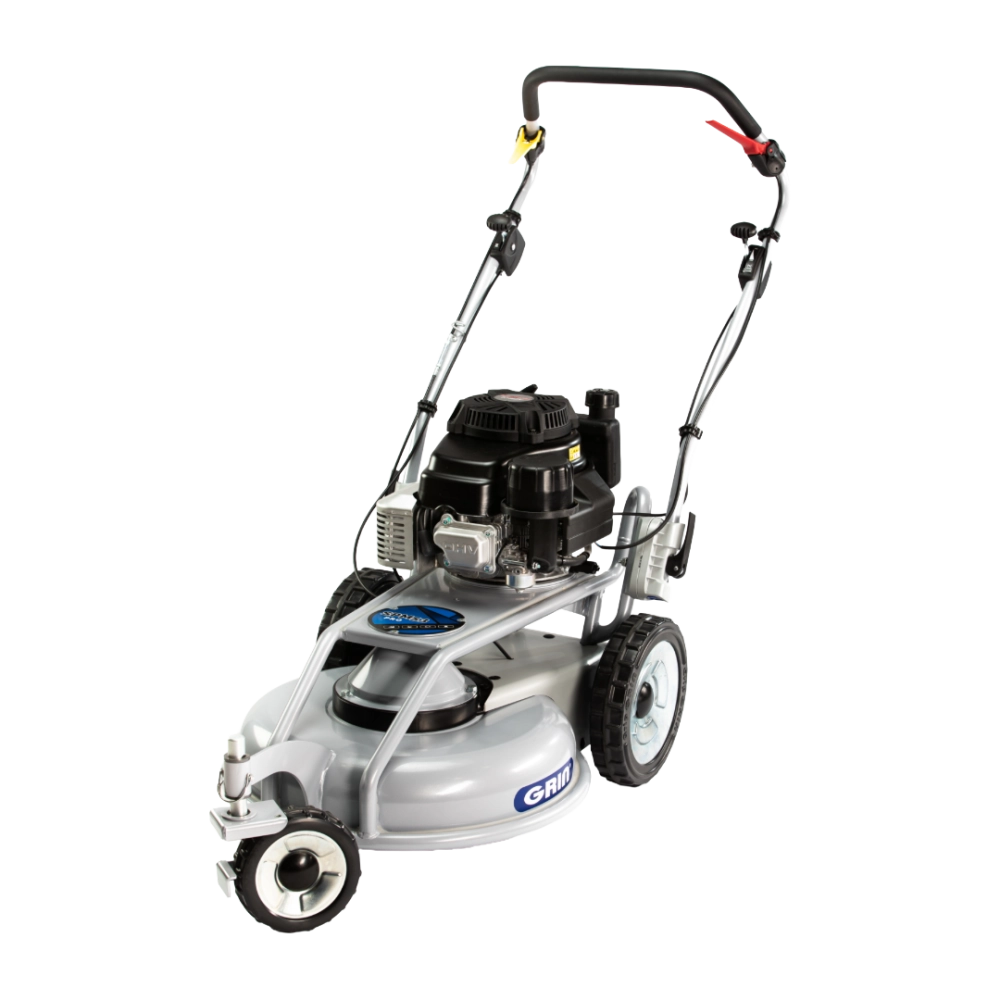 La tondeuse thermique GRIN SPM53A KW se distingue par sa configuration à trois roues, conçue pour offrir une maniabilité exceptionnelle sur tous types de terrains. La roue avant pivotante, combinée aux roues arrière GRIP GRIN MAXI, permet de circuler facilement autour des obstacles et dans les espaces étroits, tout en assurant une tonte homogène même sur des pentes et des terrains irréguliers. Sa structure innovante à trois roues garantit un fauchage précis et efficace, même près des arbres, bordures ou zones difficiles d’accès, rendant cette tondeuse idéale pour l’entretien professionnel de pelouses et prairies.