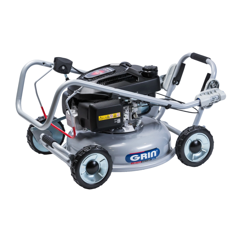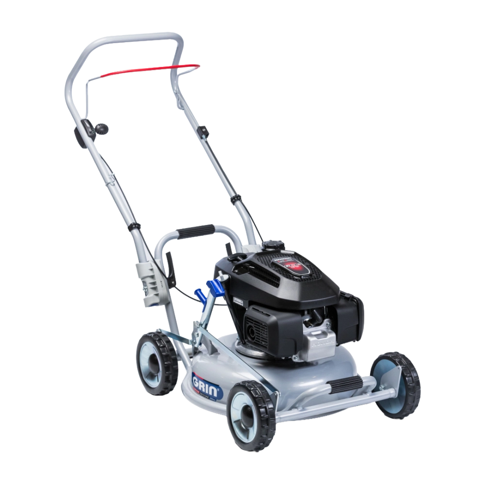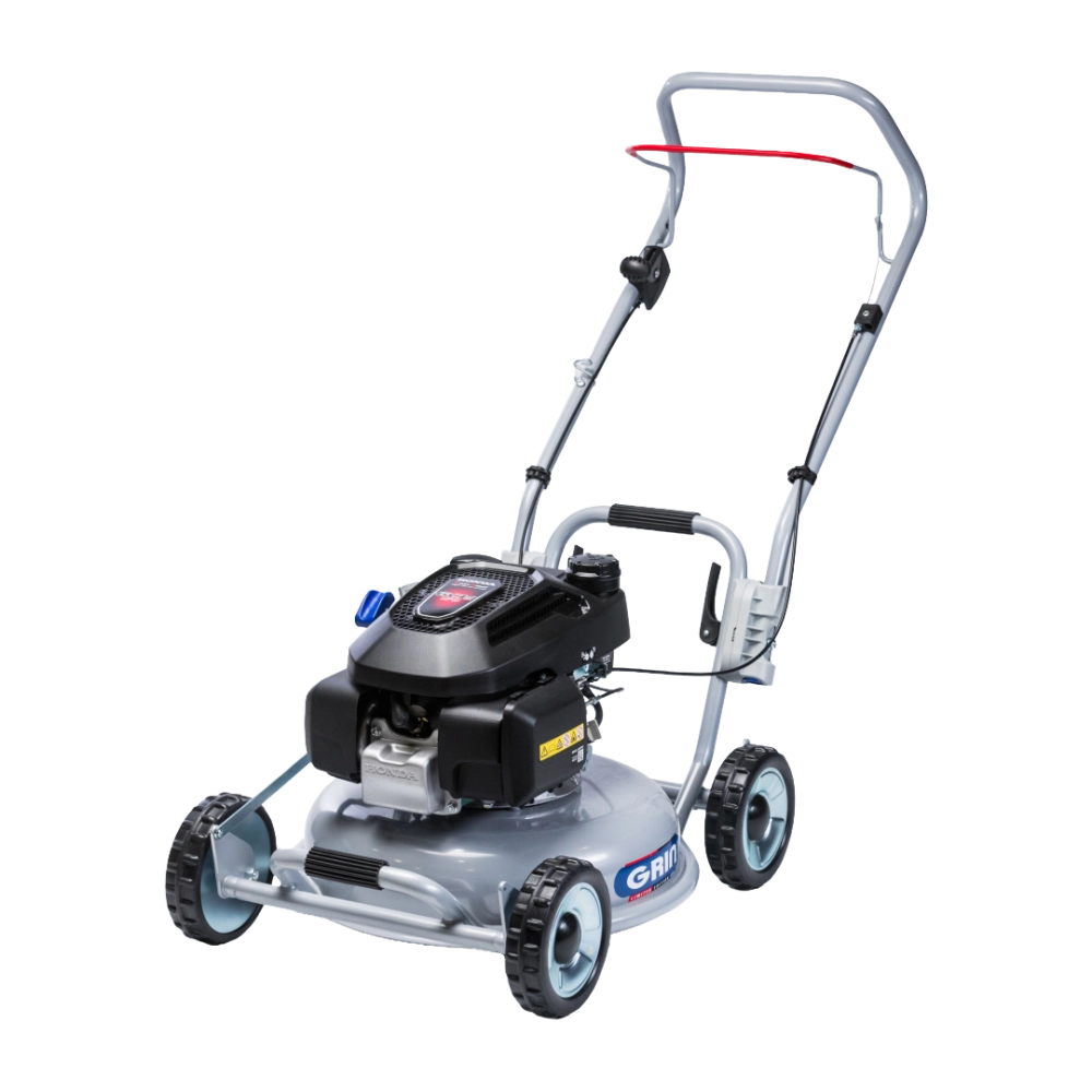 Cette tondeuse utilise la technologie “Tondre, ne plus ramasser” de GRIN, grâce à son système de mulching ultra-fin. L’herbe est coupée en fines particules qui se décomposent rapidement pour nourrir naturellement votre pelouse, éliminant ainsi le besoin d’un bac de ramassage. Les roues sur roulements à billes et la structure solide assurent à la fois confort de poussée et durabilité, même sur des terrains irréguliers ou accidentés. Pour une protection supplémentaire sur les pelouses caillouteuses, un cône de protection moteur est disponible en option.