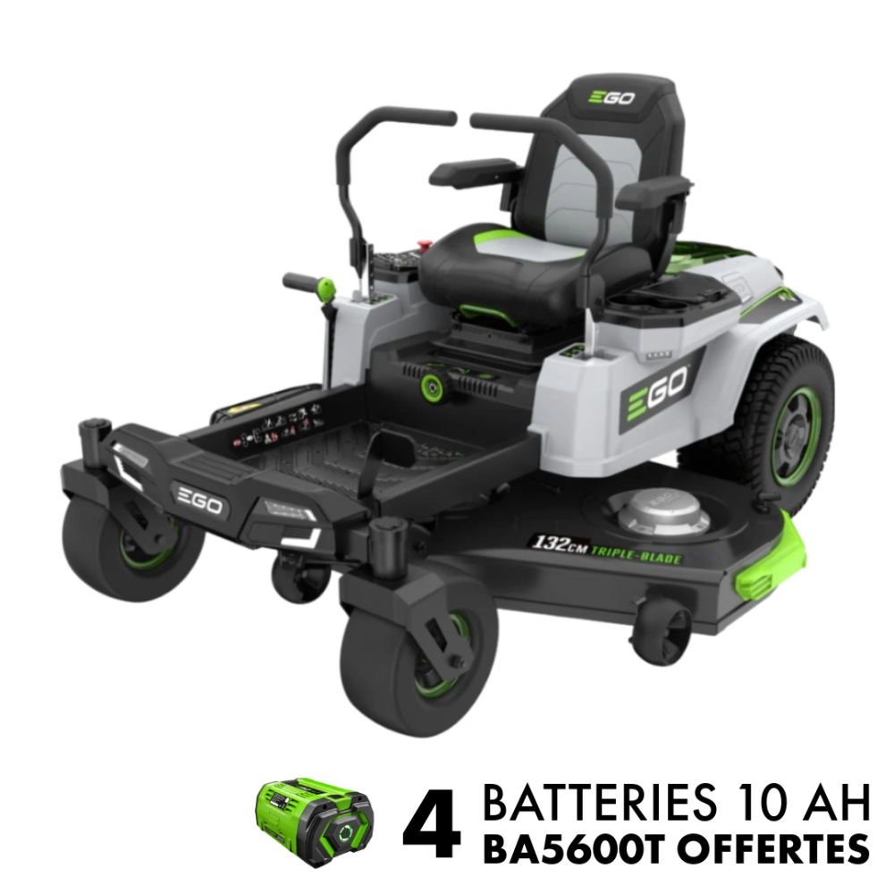 OFFRE EGO : 4 batteries 10,0 Ah BA5600T offertes pour l'achat de ce tracteur. Les batteries offertes s'ajoutent automatiquement au panier. Voir conditions complètes de l'offre sur la page Offres Promotionnelles.