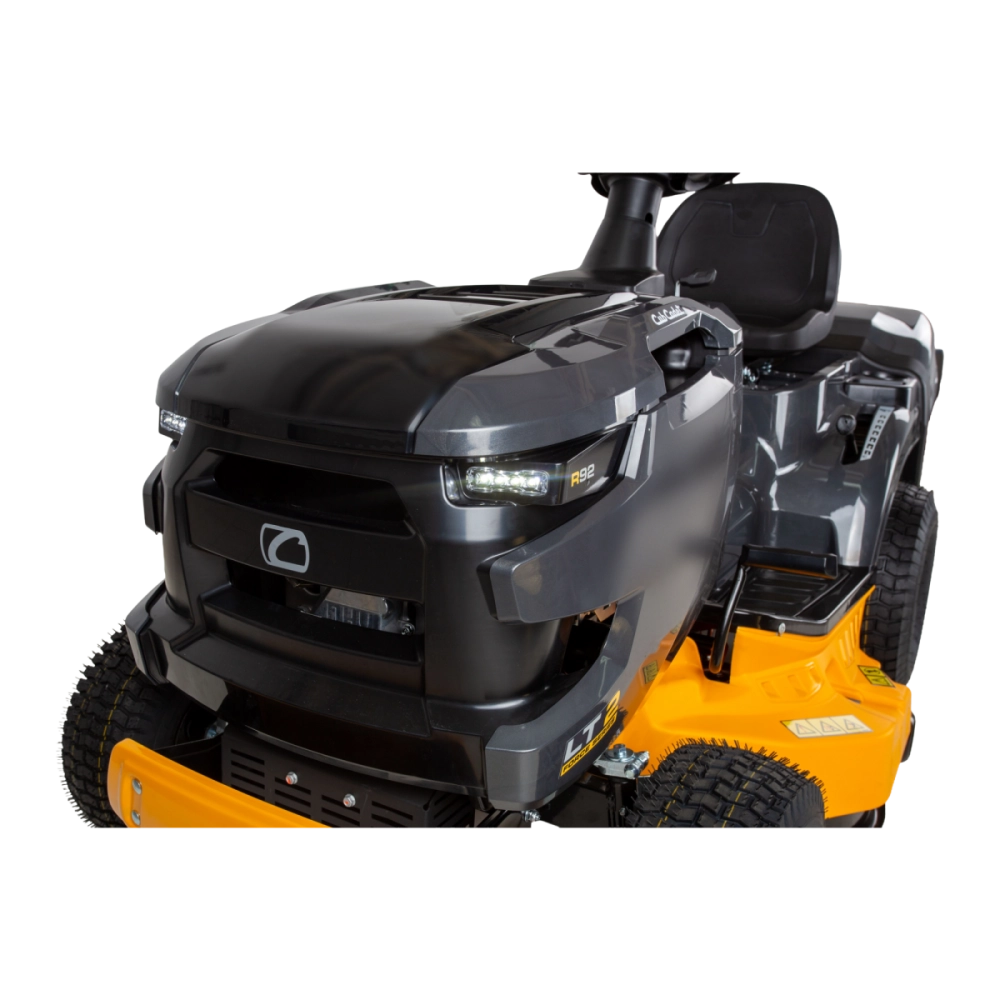 Pensée pour le confort et la durabilité, la LT2 R92 dispose d’un châssis en acier robuste et d’un pare-chocs avant pour protéger la machine. Le capot monobloc pivotant permet un accès rapide au moteur et simplifie l’entretien, tandis que le rayon de braquage court de 46 cm rend la tondeuse particulièrement maniable. La plateforme dégagée assure une position confortable pour l’utilisateur et les phares LED offrent une visibilité optimale par faible luminosité.