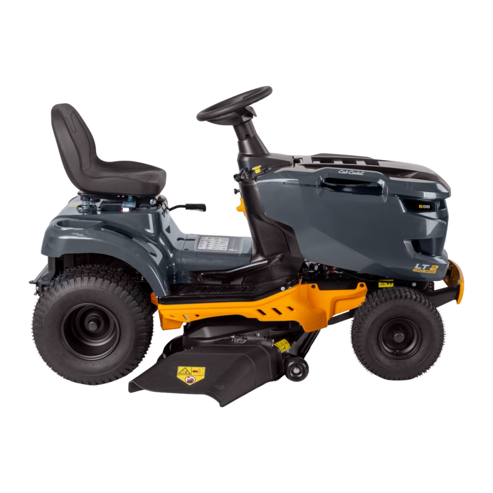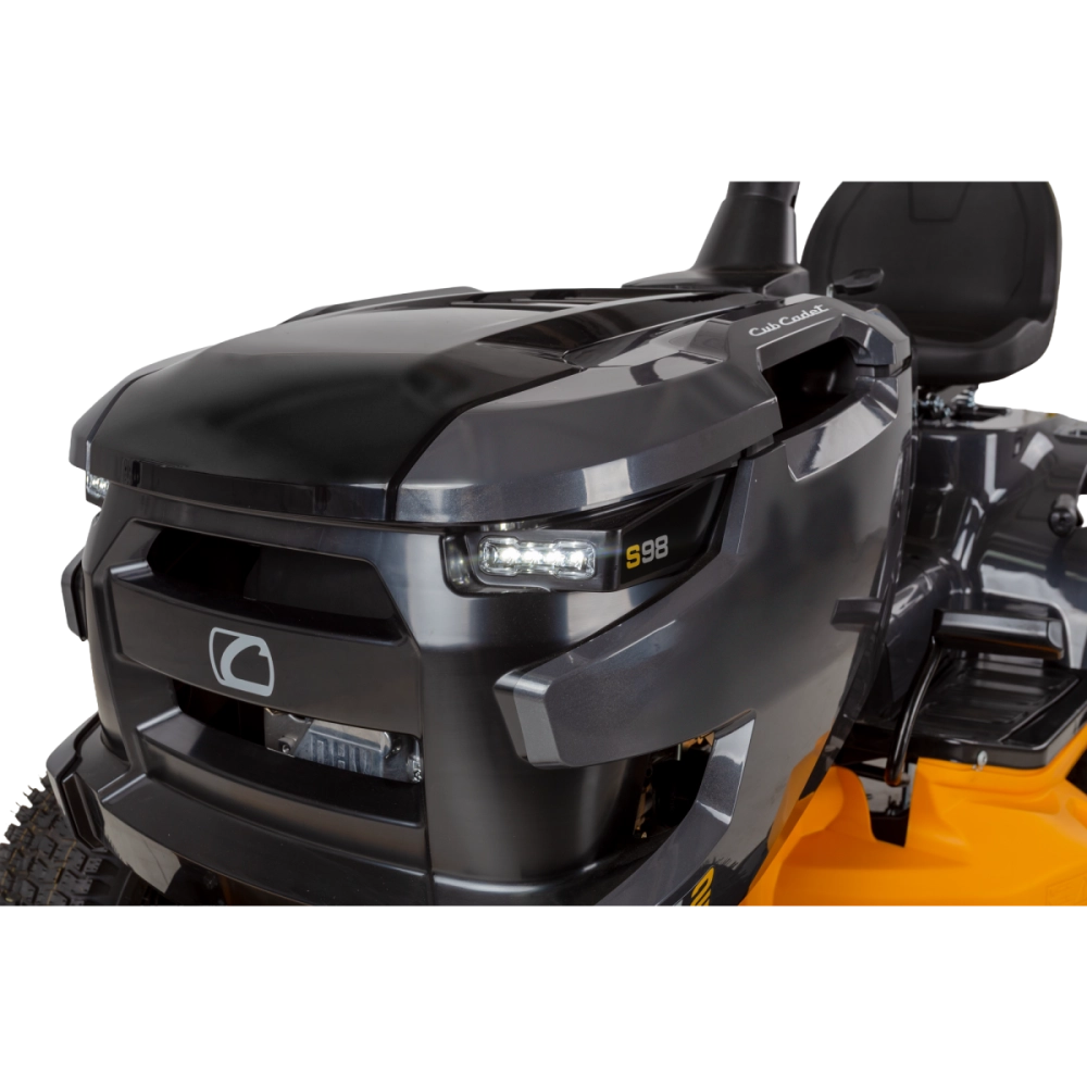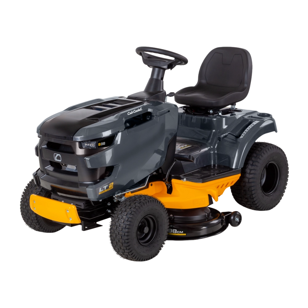 Cette autoportée repose sur un châssis en acier robuste avec pare-chocs avant, garantissant durabilité et protection. Le capot monobloc pivotant offre un accès facile au moteur pour un entretien simple. Avec son rayon de braquage court de 46 cm et sa plateforme dégagée, la LT2 S98 allie maniabilité et confort, tandis que les phares LED assurent une bonne visibilité même lorsque la luminosité diminue.