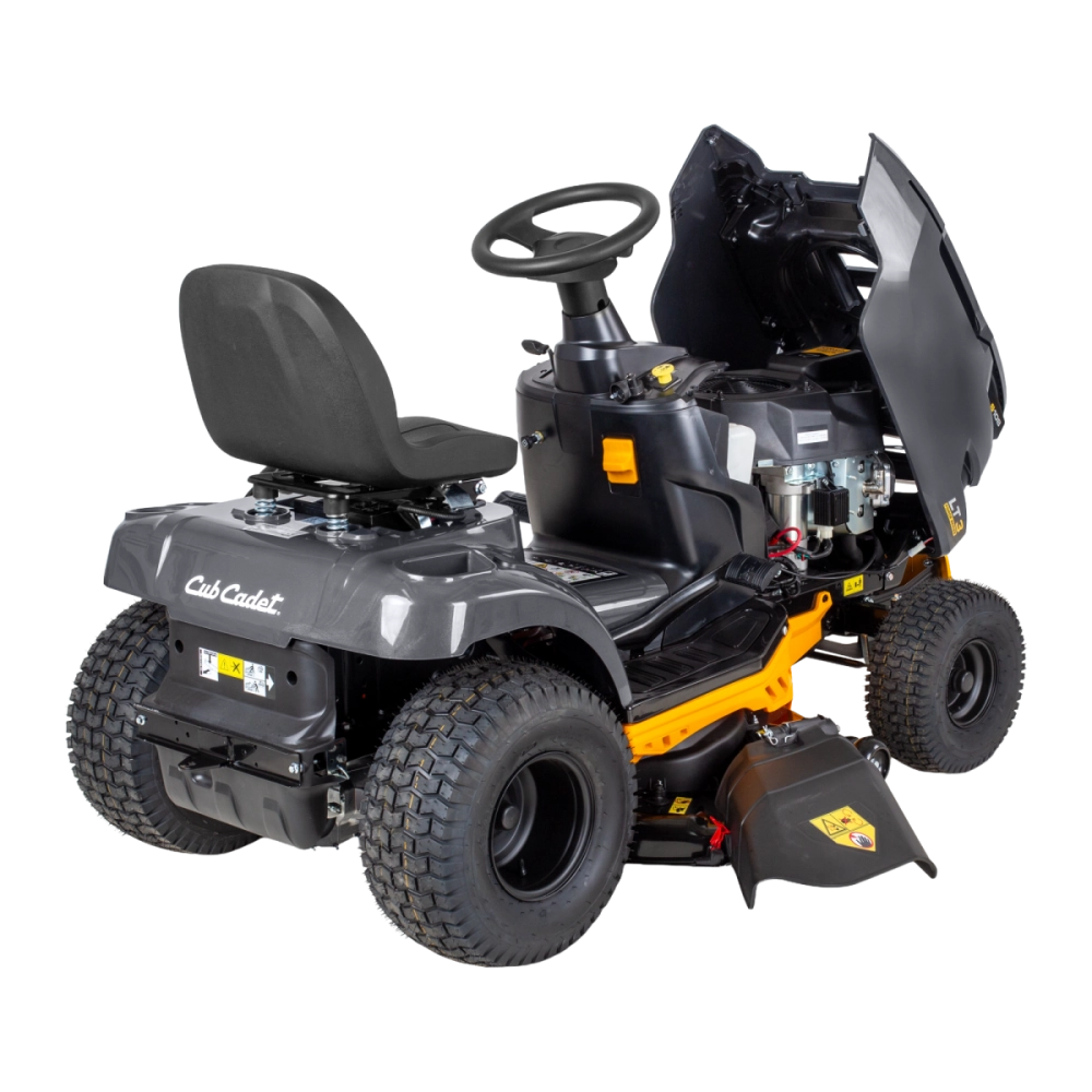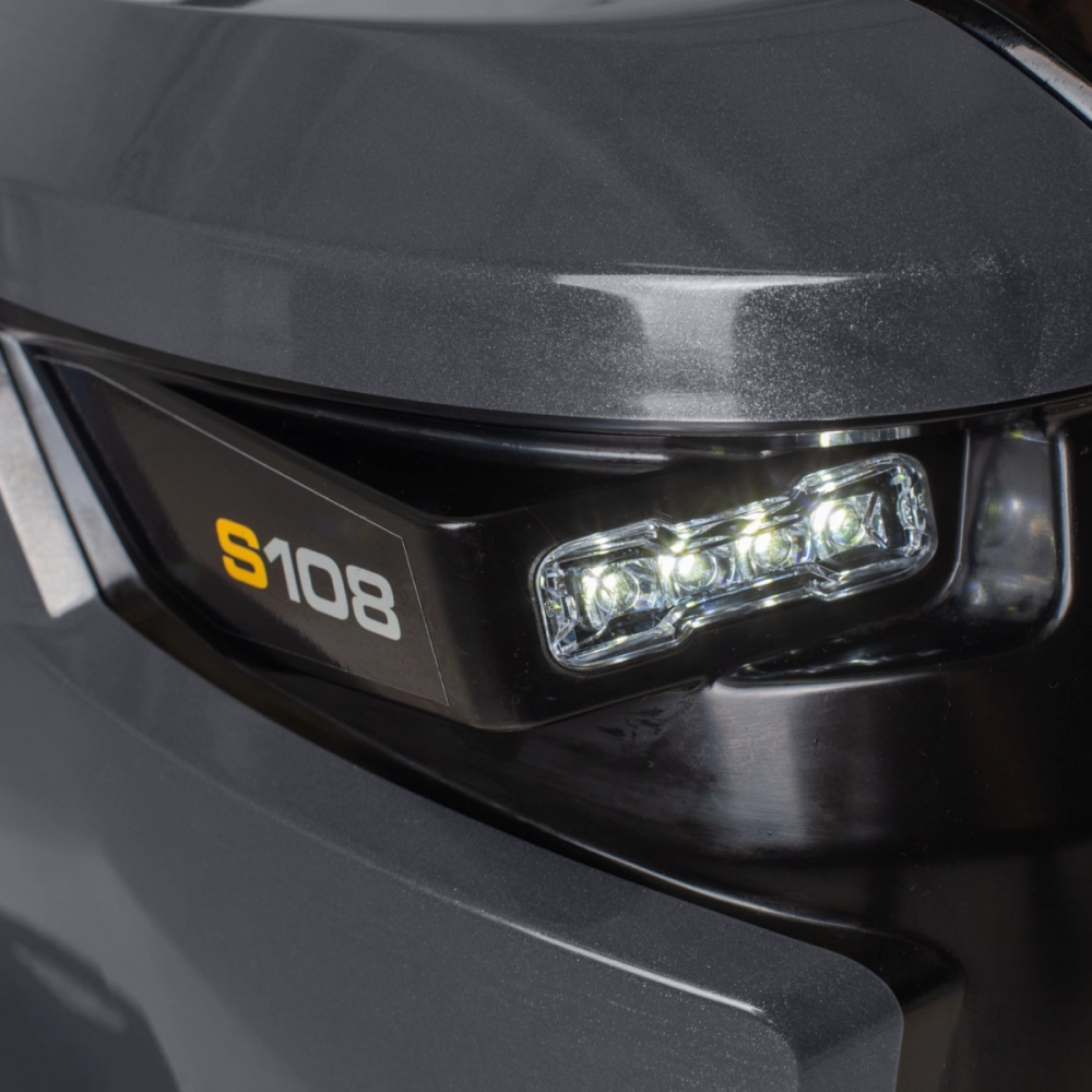 Pensée pour offrir confort et robustesse, cette autoportée dispose d’un châssis en acier renforcé et d’un pare-chocs avant protégeant la machine. Le capot monobloc pivotant facilite l’entretien, et le rayon de braquage court de 46 cm assure une maniabilité optimale pour contourner les obstacles. La plateforme dégagée et les phares LED améliorent le confort et la visibilité, même en fin de journée.
