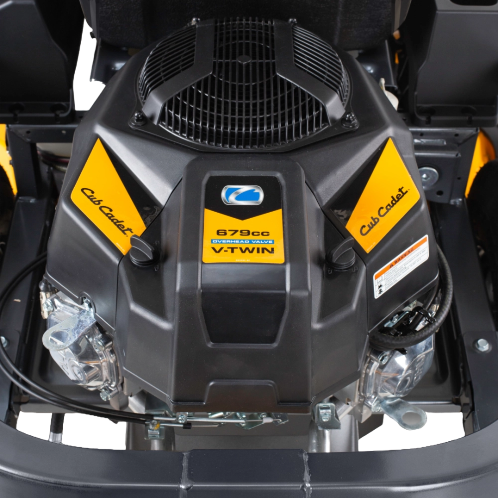 Côté moteur, CUB CADET intègre un bicylindre OHV de 679 cm³ développant 11,6 kW, capable de fournir un couple élevé même lors des tontes intensives. La double transmission hydrostatique, indépendante sur chaque roue, garantit une conduite fluide et une maîtrise parfaite. Le réservoir de 13,25 litres offre une grande autonomie, idéale pour des sessions prolongées sans interruption. Conçu pour durer, le Z1 107 s’appuie sur un châssis tubulaire 50 x 50 mm, reconnu pour sa stabilité et sa longévité. Le confort n’est pas oublié : leviers à grip soft-touch anti-vibration, large plage de 15 hauteurs de coupe (25 à 115 mm) et compatibilité avec un bac de 230 litres en option (réf. 19B70054100). Le déflecteur inclus et le kit mulching fourni permettent d’adapter facilement le mode de tonte aux besoins du terrain.