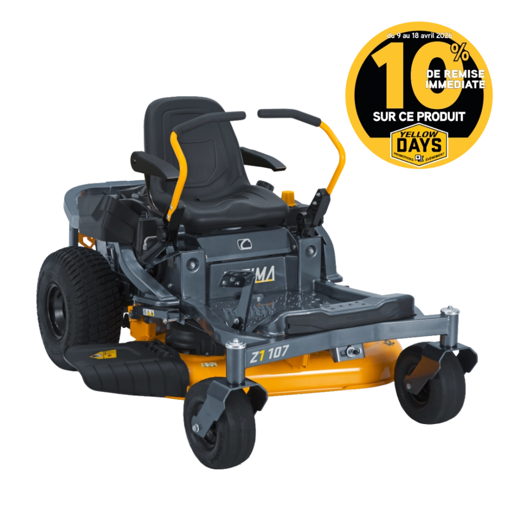 Le tracteur tondeuse CUB CADET Z1 107 est conçu pour les utilisateurs qui recherchent avant tout la rapidité et l’efficacité. Grâce à sa technologie zéro-turn, il pivote sur place pour enchaîner les virages serrés et contourner les obstacles avec une précision remarquable. Associé à une largeur de coupe de 107 cm et à un engagement électromagnétique des lames, il assure une tonte nette, régulière et surtout beaucoup plus rapide qu’un tracteur classique.