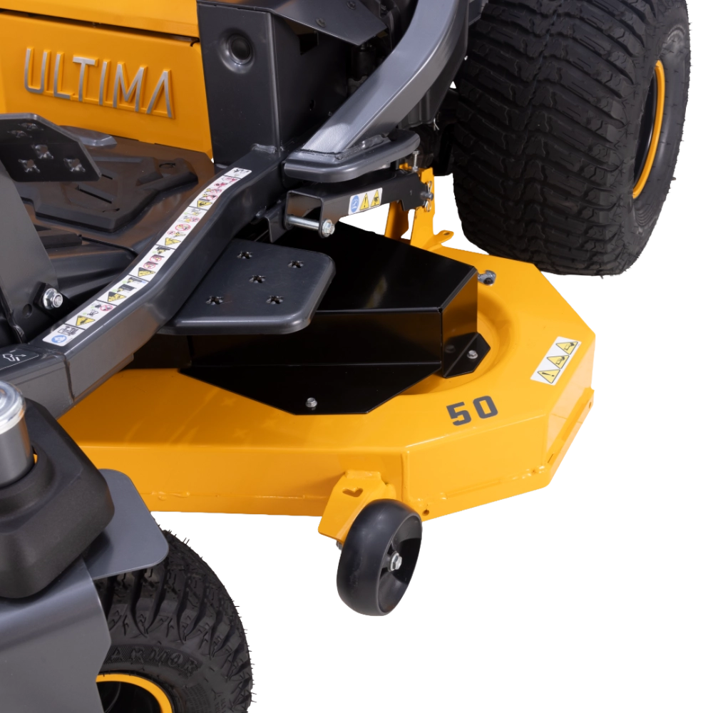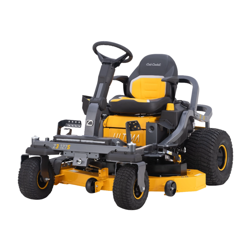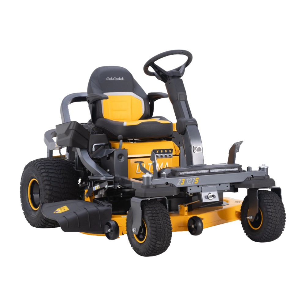 Le tracteur tondeuse CUB CADET Z3 127S se démarque par son rayon de braquage zéro et la technologie Synchro-Steer, qui synchronise les deux transmissions hydrostatiques pour un contrôle optimal du volant. Cette configuration assure des manœuvres extrêmement précises, même sur des terrains irréguliers ou avec des obstacles serrés. Le carter flottant et la colonne de direction ajustable garantissent une stabilité maximale et un confort accru pendant la tonte.