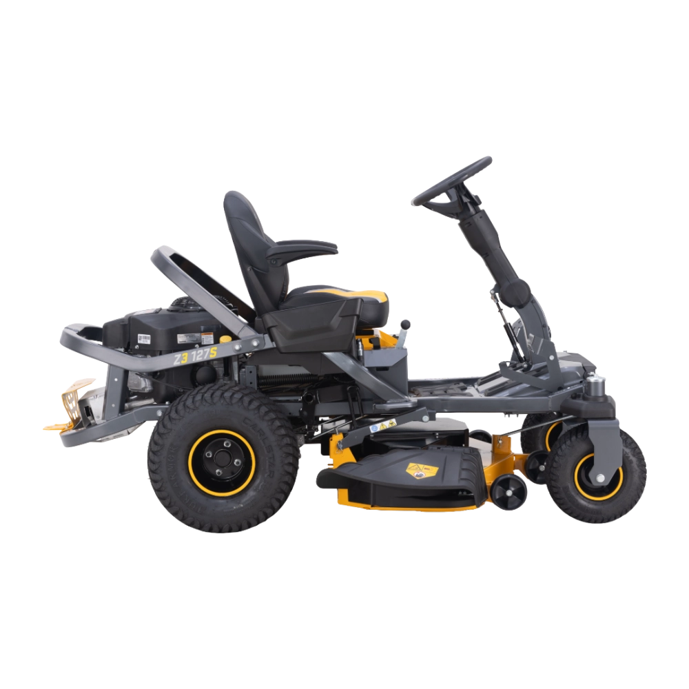 Avec un moteur KAWASAKI bicylindre 726 cm³ développant 14,5 kW, le Z3 127S allie puissance et régularité pour les tontes intensives. Sa double transmission hydrostatique assure une progression fluide, tandis que 15 hauteurs de coupe (25 à 114 mm) et l’engagement électromagnétique des lames permettent une adaptation parfaite à tous les types de pelouse.
