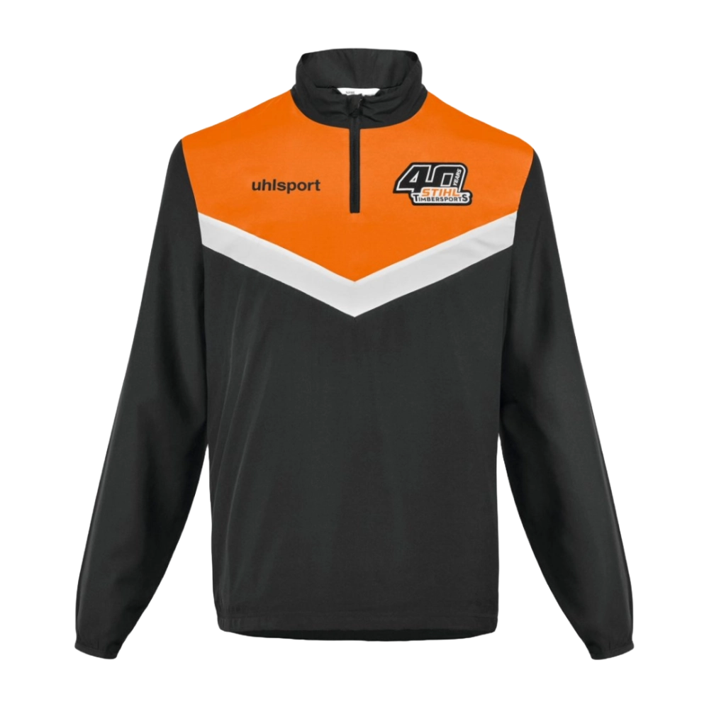 Célébrez les 40 ans de TIMBERSPORTS® avec cette veste zippée de survêtement en édition spéciale 2025 signée STIHL. Conçue dans un style rétro inspiré des années 80, cette veste noire et orange rend hommage à l’histoire légendaire de la compétition. Le badge officiel du 40e anniversaire est apposé sur la poitrine, apportant une touche authentique à cette pièce emblématique. L'inscription du sponsor UHLSPORT est également imprimée pour rappeler l’univers sportif et l'héritage de cette discipline extrême.