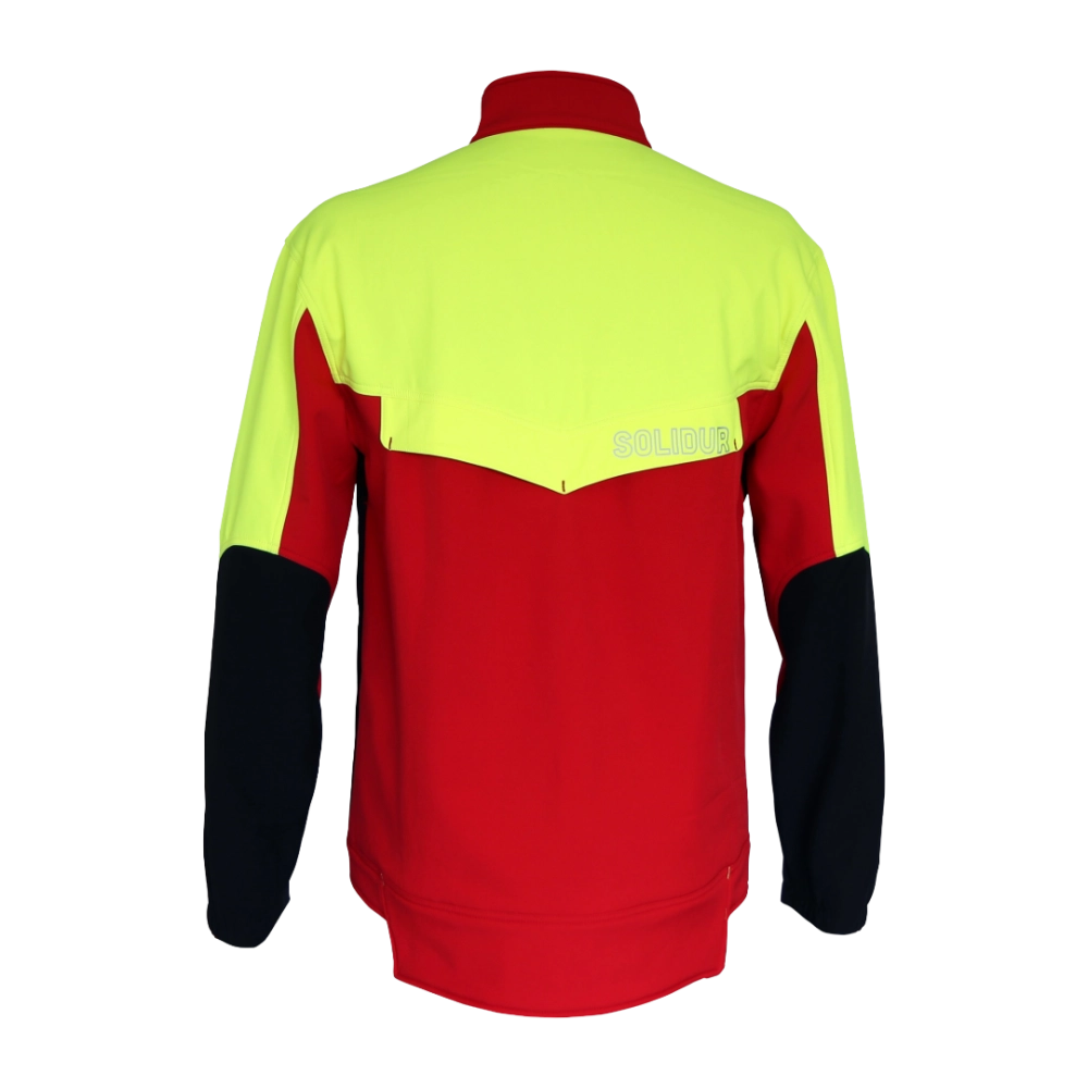 La veste SOLIDUR ODON rouge est conçue pour allier confort, protection et praticité. Fabriquée en softshell 2 couches, elle associe un tissu extérieur en polyester/Spandex® résistant et déperlant à une polaire intérieure qui apporte chaleur et douceur. Ses 3 zones d’aération (sous les bras et dans le dos) garantissent une régulation thermique optimale lors de vos activités. Fonctionnelle, elle est équipée de 3 poches extérieures : 2 poches repose-mains et 1 poche zippée napoléon côté cœur, idéales pour garder vos effets personnels à portée de main. Avec sa coupe moderne et sa conception technique, cette veste est parfaite pour travailler ou se déplacer en toute aisance, même par temps frais et humide.